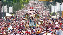 The Divina Pastora (Divine Shepherdess) is a statue of the Virgin Mary holding the infant Jesus, with a lamb at her side. It is considered to be one of the most important religious icons of Venezuela. Divina Pastora is the patron saint of the city of Barquisimeto and of the Venezuelan National Militia. The original image dates from 1735. Divina Pastora is celebrated in a procession on January 14 of each year, when a massive Marian procession occurs, considered to be one of the largest in the world, attracting thousands of pilgrims.