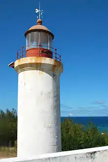 Barra Lighthouse (Portuguese: Farol da Ponta da Barra) is a lighthouse in southeastern Mozambique. The lighthouse stands on the Indian Ocean coast, at Barra Beach on the Ponta da Barra peninsula in Inhambane Province, 25 km drive from Inhambane city.[1] The beach is a major Mozambican tourist destination. Snorkeling is popular below the lighthouse at low tide where there is a natural tidal pool.[2] The wreck of the SS Inharrime, an Italian-built cargo ship that ran aground in 1949, lies exposed nearby.[3] The Barra and Tofo area is one of the global hotspots for divers to see whale sharks, sea turtles and manta rays.