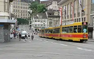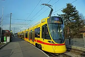 Baselland Transport AG (BLT) is a Swiss public transport operator in the cantons of Basel-Land, Basel-Stadt, Solothurn and in France. The BLT was founded in 1974, and is owned by the Canton of Basel-Land, located to the south of the city. It transports some 48 million passengers per year, using a fleet of 64 buses and 100 trams over a network of 165 kilometres (103 mi) of bus routes and 65 kilometres (40 mi) of tram routes.[1]