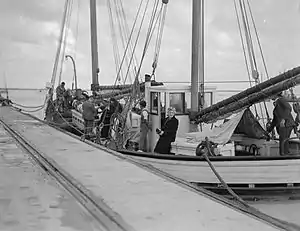 In order to promote tourism to the Houtman Abrolhos, the Western Australia State Government obtained the boat from the Australian Army for purchase by Archdale "Dal" Gaze and Alan Fox.[1][2] Batavia Road made its first sailing from Geraldton on Christmas Day 1946 and until 1948, together with their another boat, Suda Bay, Gaze and Fox transported tourists to and from the Houtman Abrolhos, especially Pelsaert Island.[2][4] This was the first known commercial tourist operation in the Houtman Abrolhos. After the partnership split in 1948, Gaze continued using Batavia Road for tourism, as well as transporting stores and their catch for lobster fishermen based on the islands.[5] On 13 June 1948 a cyclone struck the Houtman Abrolhos and the Batavia Road was blown ashore at Wreck Point, near the Half Moon Reef and was nearly sunk. Tourists assisted the crew in salving the boat and fabricating a replacement rudder and, after help from fishermen, they were able to make the passage back to Geraldton.[6] Repairs were extensive and the boat returned to service in August 1948.[7]