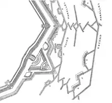 Meanwhile, the French recommenced their siege of Charleroi. On 13 June, Hatry's division continued the old siege parallels at Dampremy while beginning a new set of parallels north of Charleroi.
