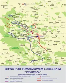 The Battle of Tomaszów Lubelski took place from 18 September to 20 September 1939 near the town of Tomaszów Lubelski. It was the second largest battle[2] of the Invasion of Poland (Battle of Bzura was the largest) and also the largest tank battle of the campaign. It resulted in the surrender of Army Krakow on 20 September 1939.[3]