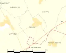 Fayolle planned attacks to capture Sailly-Saillisel, a twin village to the north-west of St Pierre Vaast wood, followed by outflanking attacks to the north and south, avoiding a frontal attack. Fayolle expected to be ready to attack Sailly-Saillisel by 7–8 October but if an attack towards Rocquigny could begin earlier, the Fourth Army was to attack to cover the French left flank. Sailly-Saillisel was along the Péronne–Bapaume road and Saillisel lay at right angles on the east side, along the Moislains–St Pierre Vaast road and overlooked a shallow valley to the north towards Le Transloy. The difficulties of movement in the rear, wet weather in October and the terrain channelled the attacks of the Sixth Army into a gap between St Pierre Vaast Wood and the Fourth Army boundary. At the end of September, the Sixth Army took over the Fourth Army front at Morval, which widened the attack front to about 2.5 mi (4 km). The French XXXII Corps, which held the front from Rancourt to Frégicourt, was to attack the Saillisels and I Corps to the left would attack eastwards from Morval, to capture Bukovina and Jata-Jezov trenches in the German fourth position in front of the Péronne–Bapaume road, then capture the north end of the Saillisels and reach Rocquigny.[13]