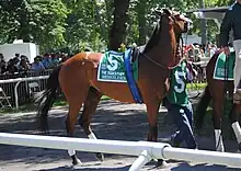 ![]() Beholder in the walking ring for the 2016 Breeders' Cup Distaff | |