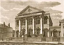 Bellamy and Hardy was an architectural practice in Lincoln, England, that specialised particularly in the design of public buildings and non-conformist chapels. Pearson Bellamy had established his own architectural practice by 1845 and he entered into a partnership with James Spence Hardy in June 1853. Both partners had previously worked for the Lincoln architect William Adams Nicholson. Hardy was described as "Chief Clerk" to Nicholson.[1] Hardy joined Pearson Bellamy immediately after the sudden death of Nicholson. As all known architectural drawings by the practice are signed Pearson Bellamy, it is likely that Bellamy was the architect and Hardy was the administrator in the practice. The partnership lasted until 1887.[2] Bellamy continued to practise until 1896.[3]