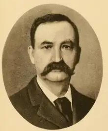 On August 6, 1840 Benjamin Gallagher was born in Pleasant Grove, Iowa to Lavinia Zion and George Gallagher. In 1862 he moved to the Nebraska Territory where he was appointed as post trader at Fort McPherson and later to Cheyenne in the Wyoming Territory. On May 25, 1869 he served as one of the Grand Jurors on the first court of Cheyenne and later ran as a member of the People's Party for city council before joining the Democratic Party.[1] He was appointed as Auditior of the Territory by Territorial Governor John Allen Campbell and took the oath of office on December 11, 1869 and served until June 4, 1870. He later moved back to Omaha, Nebraska and in the 1890s became a supporter of the free silver movement.[2]