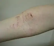 - ↑ Yarbrough KB, Neuhaus KJ, Simpson EL (March–April 2013). "The effects of treatment on itch in atopic dermatitis". Dermatologic Therapy. 26 (2): 110–119. doi:10.1111/dth.12032. PMC 4524501. PMID 23551368.