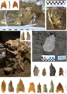 Stone tools at Besséʼ's grave. Maros point is on top inset.