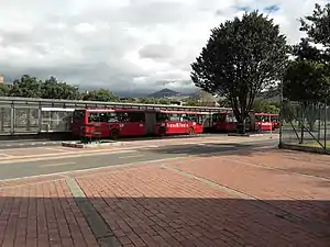 The simple-station Biblioteca is part of the TransMilenio mass-transit system of Bogotá, Colombia, opened in the year 2000.