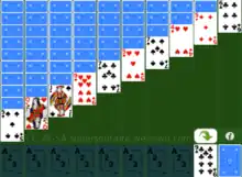 Die Pyramide is a patience game of medium difficulty that is played with 104 playing cards. It is also known as Big Harp. It has one more stack than Double Klondike, which makes the game easier. The name is German and means "The Pyramid". It is not related to the patience game of Pyramid.