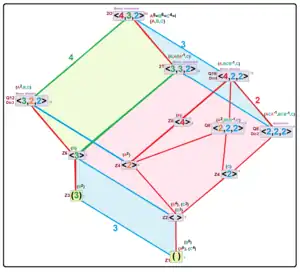 - ↑ Coxeter&Moser: Generators and Relations for discrete groups: <l,m,n>: Rl = Sm = Tn = RST