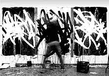 Bisco Smith is a New York-based contemporary artist with roots in music and graffiti. Bisco works in a variety of formats, including canvas and large outdoor murals, and is recognized for his lyrical approach to deconstructed expressionism characterized by gestural marks and abstracted text that embody the energy of a moment. Using music as his muse, he approaches each canvas as unique opportunity to channel the expression of his inspiration by stripping his compositions to their fundamental essence of motion and rhythm.[1] Bisco's works, painted predominantly in black and white, embody the creative spontaneity that exists at the intersection of music and paint.[2]