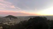 Bishop Peak is a 1,546-foot (471 m) volcanic plug in San Luis Obispo, California. It is the tallest of the Morros or "Nine Sisters", a chain of similar peaks stretching to Morro Bay. Often said to take its name from its resemblance to a bishop's miter, it is named in homage to the town's name (San Luis Obispo). "Obispo" is the Spanish word for Bishop.