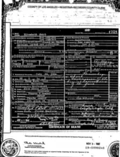 Police quickly deemed Mark Hansen, the owner of the address book found in the packet, a suspect.[64] Hansen was a wealthy local nightclub and theater owner[65] and an acquaintance at whose home Short had stayed with friends.[66] According to some sources,[lower-alpha 7] Hansen also confirmed that the purse and shoe discovered in the alley were in fact Short's.[31] Ann Toth, Short's friend and roommate, told investigators that Short had recently rejected sexual advances from Hansen, and suggested it as potential motive for him to kill her;[15] however, he was cleared of suspicion in the case.[67] In addition to Hansen, the Los Angeles Police Department (LAPD) interviewed over 150 men in the ensuing weeks whom they believed to be potential suspects.[68] Manley, who had been one of the last people to see Short alive, was also investigated, but was cleared of suspicion after passing numerous polygraph examinations.[15] Police also interviewed several persons found listed in Hansen's address book, including Martin Lewis, who had been an acquaintance of Short's.[69] Lewis was able to provide an alibi for the date of Short's murder, as he was in Portland, Oregon, visiting his dying father-in-law.[70]