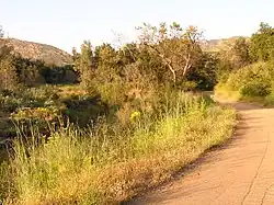 Black Star Canyon is a remote mountain canyon in the Santa Ana Mountains, located in eastern Orange County, California. It is a watershed of the Santa Ana River. Black Star Canyon is a popular destination for mountain bikers as well as hikers due to its wild scenery. The California Historical Landmark associated with the canyon refers to the village of Puhú.[1]