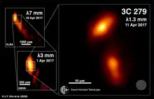 - ↑ "Something is Lurking in the Heart of Quasar 3C 279". Event Horizon Telescope. Retrieved April 20, 2019.