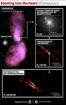 - ↑ "EHT Pinpoints Dark Heart of the Nearest Radio Galaxy". eventhorizontelescope.org. July 19, 2021. Retrieved July 20, 2021.