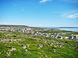 Lourdes-de-Blanc-Sablon (51°24′41″N 57°12′11″W / 51.41139°N 57.20306°W[11]) is the largest community in the municipality, and is located on the headland that separates Brador Bay from Blanc-Sablon Bay. It was originally known as Longue-Pointe (Long Point) until the beginning of the 20th century. It has a small natural harbour, and long depended on the fishing business.[12]
