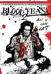 Blood Feast 2: All U Can Eat is a 2002 slasher splatter film directed by Herschell Gordon Lewis and starring John McConnell, Mark McLachlan, Melissa Morgan, Toni Wynne, and J.P. Delahoussaye. It is the sequel to the 1963 film Blood Feast. Filmed under a working title of Blood Feast 2: Buffet of Blood and using the same grindhouse style as its predecessor, the film continues the story began in the original film, where a grandson of Fuad Ramses attempts to restart his grandfather's catering business. The film depicts the killer falling victim to spirit possession by the goddess Ishtar.