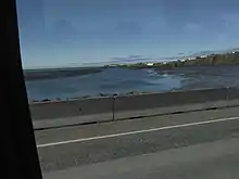 Borgarfjarðarbrú (Icelandic pronunciation: [ˈpɔrkarˌfjarðarˌpruː], "Borgarfjörður bridge") is the second longest bridge in Iceland, after Skeiðarárbrú. It crosses Borgarfjörður, linking Borgarnes to Route 1 (the Ring Road) and connecting the town with other parts of Iceland. It spans 520 m and was opened on 13 September 1981,[2] with repairs being done in 2012.[3] Before the bridge was opened, the Ring Road crossed the Hvítá river 4 kilometres (2.5 mi) upstream of its mouth into Borgarfjörður at the bridge at Ferjukot opened in 1928.