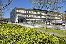 Bornholms Hospital (English: Hospital of Bornholm) is a hospital in the city of Rønne on the Danish island of Bornholm. Administratively, it falls under the domain of the Capital Region of Denmark along with hospitals in the greater Copenhagen area and northern Zealand. It serves a population of under 40,000 (2017) on Bornholm and Ertholmene.[1] The hospital also physically hosts a mental health centre, which however falls administratively under the psychiatric hospital of Region Hovedstadens Psykiatri. Even before it became a part of the Capital Region of Denmark, some patients from the hospital were flown by helicopter to Rigshospitalet in Copenhagen Municipality.