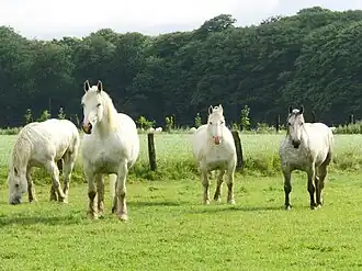 The Boulonnais, also known as the "White Marble Horse",[1] is a draft horse breed. It is known for its large but elegant appearance and is usually gray, although chestnut and black are also allowed by the French breed registry. Originally there were several sub-types, but they were crossbred until only one is seen today. The breed's origins trace to a period before the Crusades and, during the 17th century, Spanish Barb, Arabian, and Andalusian blood were added to create the modern type.