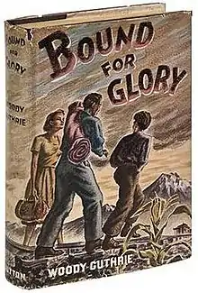 Bound for Glory is the partially fictionalized autobiography of folk singer and songwriter Woody Guthrie. The book describes Guthrie's childhood, his travels across the United States as a hobo on the railroad, and his recognition as a singer. Some of the experiences of fruit picking and a hobo camp are similar to those described in The Grapes of Wrath.