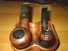 The bowls of ceremonial pipes used in some indigenous American nations are often carved from red pipestone or catlinite,[4] a fine-grained easily worked stone of a rich red color of the Coteau des Prairies, west of the Big Stone Lake in South Dakota. The pipestone quarries have traditionally been neutral ground among warring tribes, as people from multiple nations journeyed to the quarry to obtain the sacred pipestone.[5] Sacred ceremonial pipes are not used for smoking intoxicants, but rather to offer prayers in a spiritual or religious ceremony.