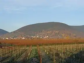 ![]() View from Maikammer of the Breitenberg with the village of Sankt Martin at its southeastern foot | |