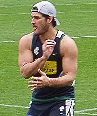 Due to his brief stint at Brisbane, he has sardonically referred to himself as a "Brisbane Legend" on numerous occasions, including at the Fox Footy Longest Kick competition, which he would incidentally win the 2017 edition post-retirement with a kick of 66.1 metres (217 ft), winning $10,000 in the process.[16]