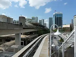 Brickell station is a Metrorail rapid transit station in Miami, Florida, serving the system's Green and Orange Lines. One of the core stations of Miami's public transport network, it serves the financial district of Brickell. Combined, the Metrorail and Metromover station complex at Brickell sees roughly 8,430 boardings each weekday, making it the system's second-busiest station.[2]