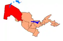 Map of Uzbekistan. Karakalpakstan in red.