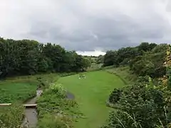 Brierdene or Brier Dene is a small valley[1] through which the Brierdene Burn flows down to its mouth at Whitley Bay.[2] The valley was partly occupied by a coal mine in the past of which very little is now visible.[3] Part of the valley is now the Brierdene Community Green Space and the Brierdene Wildlife Site.[4] The site is now home to more than 1000 identified organisms and includes a ecologically diverse meadow and is a designated Site of Nature Conservation Importance.[2][4] Much of work of transforming the valley into a wildlife refuge was undertaken by a voluntary group - the Friends of Brierdene. This work earned them a Queens Award for Voluntary Service.[5]
