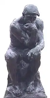 Most of the action for the first season-and-a-half of Dobie Gillis centered on the Gillis grocery store, Central High School, and the Central City park. The park scenes are used as the show's framing device, with Dobie sitting on a park bench in front of a reproduction of Auguste Rodin's statue The Thinker. Breaking the fourth wall, he would explain to the viewing audience his problem of the week, usually girls or money (in the earliest episodes, Dobie is seen emulating the trademark pose of The Thinker – head planted on fist in deep contemplation – before turning and acknowledging the camera).[3]