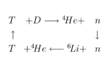 The scientists at Aldermaston had created a design incorporating staging, radiation implosion, and compression, but they had not mastered the design of thermonuclear weapons. Knowing that much of the yield of American and Soviet bombs came from fission in the uranium-238 tamper, they had focused on what they called the "lithium-uranium cycle", whereby neutrons from the fission of uranium would trigger fusion, which would produce more neutrons to induce fission in the tamper. However, this is not the most important reaction. Corner and his theoretical physicists at Aldermaston argued that Green Granite could be made to work by increasing compression and reducing Taylor instability. The first step would be achieved with an improved Tom. The Red Beard Tom was given an improved high explosive supercharge, a composite (uranium-235 and plutonium) core, and a beryllium tamper, thereby increasing its yield to 45 kilotonnes of TNT (190 TJ). The Dick was greatly simplified; instead of the 14 layers in Short Granite, it would have just three.[142][144] This was called Round A; a five-layer version was also discussed, which was called Round B. A third round, Round C, was produced, for diagnostics. It had the same three layers as Round A, but an inert layer instead of lithium deuteride. Calculations for Round B were performed on the new IBM 704, while the old Ferranti Mark 1 was used for the simpler Round A.[142]