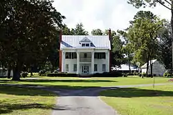 Bryan–Bell Farm, also known as Oakview Plantation, is a historic plantation house and farm complex and national historic district located near Pollocksville, Jones County, North Carolina. The district encompasses 25 contributing buildings, 2 contributing sites, and 2 contributing structures spread over seven areas. The main house was built about 1844 in the Federal style, and renovated in 1920 in the Classical Revival style. It is a 2+1⁄2-story, five-bay, frame residence with a monumental portico with Corinthian order columns. Among the other contributing resources are the farm landscape, office (1920s), seven pack houses (1920s), equipment building (c. 1939), storage building (c. 1930), barn (c. 1840), two chicken houses (c. 1923), stable / carriage house (c. 1920), two garages (c. 1930s), equipment shed (c. 1930), metal silo (c. 1930), hay barn (c. 1932), two tobacco barns (c. 1920), I-house (c. 1880), a log barn (c. 1890), a small plank building, farm house (c. 1900), and 19th century graveyard.[2]