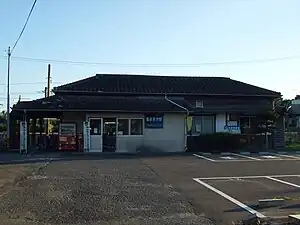 The station, which is unstaffed, consists of an island platform serving two tracks. The station building is an old wooden structure of Japanese design and serves only to house a waiting area and an automatic ticket vending machine. Access to the island platform is by means of a footbridge.[2][3]