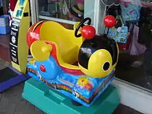 The Buzzy Bee is a popular toy in New Zealand. It resembles a bee with rotating wings that move and make a clicking noise while the toy is pulled along the ground. Possibly based on an earlier American concept,[1] it was designed and first produced in Newton, Auckland in the 1930s, by Maurice Schlesinger.[2][3] It became popular during the post-war baby boom. Its bright colours and clicking sound call are familiar to many New Zealanders, making it one of the most well-recognised items of Kiwiana. Since this time however, the Buzzy Bee has branched out into various merchandise including books, puzzle and clothing.