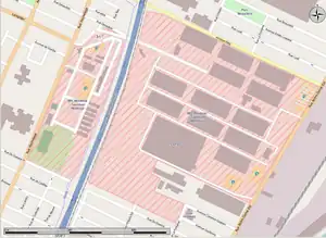 CFB Montreal is delimited by sectors north and south accessible from streets Notre-Dame Street and Hochelaga. The north and south sectors of CFB Montreal occupy an area of 2.8 km (1.7 mi) square.
