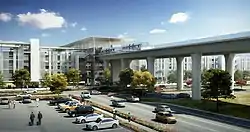 The Los Angeles International Airport Consolidated Rent-A-Car (LAX ConRAC) facility is one of the major components of the airport's US$5.5 billion Landside Access Modernization Program, along with the LAX Automated People Mover (APM).[1] The $1 billion facility will consolidate rental car operations currently spread across the Westchester neighborhood of Los Angeles. Before the construction of the ConRAC, these rental car companies operated 3,200 daily shuttle trips around the Central Terminal Area and on streets around LAX.[2]