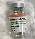 Sotrovimab, sold under the brand name Xevudy, is a human neutralizing monoclonal antibody with activity against severe acute respiratory syndrome coronavirus 2, known as SARS-CoV-2.[104][105][106] It was developed by GlaxoSmithKline and Vir Biotechnology, Inc.[105][107] Sotrovimab is designed to attach to the spike protein of SARS-CoV-2.[105][106][108]
