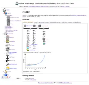 cadec-online.com was a multilingual web application that performs analysis of composite materials[1] and is used primarily for teaching,[2] especially within the disciplines of aerospace engineering, materials science, naval engineering,[3] mechanical engineering,[4] and civil engineering. Users navigate the application through a tree view which structures the component chapters. cadec-online is an engineering cloud application.[5] It uses the LaTeX library to render equations and symbols, then Sprites to optimize the delivery of images to the page. As of 2021, the application is no longer available.
