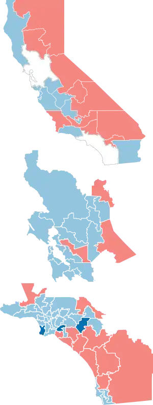 Benefiting from the large Democratic turnout due to the general election, the California Democratic Party made gains by ousting three Republican incumbents in the 60th, 65th, and 66th districts, thus regaining the two-thirds supermajority that they had lost in the previous elections.