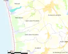 The calvary dates to between 1450 and 1460 and stands on the grass verge ("placitre") in front of Saint-Jean-Trolimon's Notre-Dame Chapel. It is the oldest of Finistère's six "grands calvaires" and is thought to be the work of several workshops operating in Scaër, mainly that of the "Maître de Tronoën". Several points emerge when this calvary is compared with the others in this region. Firstly there are two scenes devoted to Jesus' baptism. Then in the nativity scene, the statue of the baby Jesus shows him standing and aged about seven rather than as a new-born child. There are three crosses depicted, with those bearing the two robbers being a part of the composition. The calvary also depicts two angels collecting Jesus' blood. A "mise au tombeau", the scene showing Jesus being prepared for burial, a standard feature of other such calvaries, is not included and neither is the "Flight into Egypt", nor Jesus' entry into Jerusalem and his arrest. Conversely the subjects of the Last judgement and Garden of Eden are covered. The Notre-Dame Chapel dates to the 15th century. It replaced an ancient Romano-Gallic temple dedicated to the goddess Venus (mythology) and was thought to have been commissioned by the Pont barons.[1][2][3]