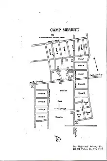- ↑ Tiedman, Howard and Zimmer, William. "Camp Merritt: The Most Used, The Least Remembered". VFW Post 3286, Cresskill, New Jersey, page 9.