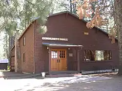 The Camp Sherman Community Hall is located in the small unincorporated community of Camp Sherman, Oregon. The hall was constructed by local volunteers under the direction of Wayne L. Korish. One of the main builders of the community hall was Luther Metke, known for his hand strewed log cabins and many bridges built in the central Oregon area.[1] It is a simple rustic design. The building is a wood post-and-beam structure with a shingled exterior. The foundation is concrete. The roof is metal and asphalt.[2][3]