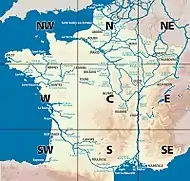 The list includes two major rivers, the Rhine and the Rhône, that have their source in Switzerland, while others flow out of France into Germany, Luxemburg and Belgium (the Sarre, Moselle, Sambre, Escaut and Lys). Cross-border canals change their name at the border. The canals are listed in order of the Sort name column. Locations given in red are temporary limits of navigation, where continued restoration works are under way or planned.