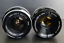 Canon FL Lens 28mm and Super-Canomatic Lens R 50mm as seen from the front
