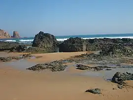 ![]() The rocks and rockpools at Cape Woolamai Surf Beach | |||||||||||||||