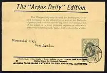 The first items of postal stationery to be issued by the Cape of Good Hope were postcards in 1878; registration envelopes and newspaper wrappers were first issued in 1882; post paid envelopes in 1892 and lettercards in 1895.[8][9]